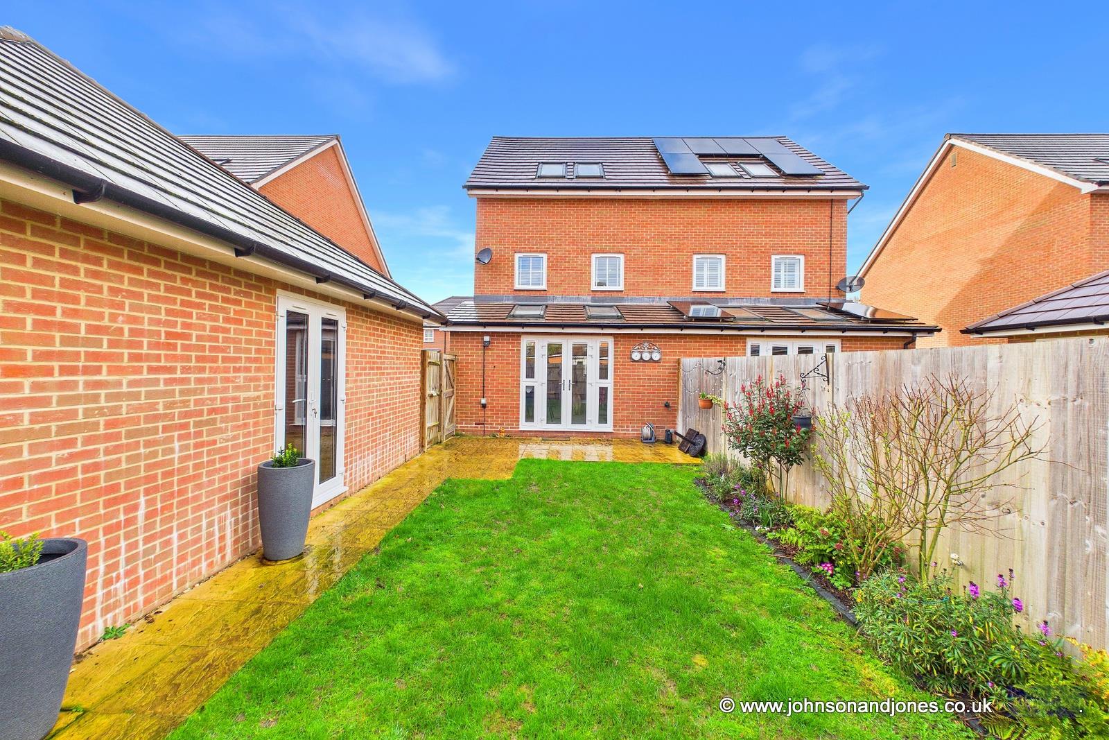 Located on the ever-popular Cartwright Drive in the charming town of Chertsey, this stunning semi-detached house, completed in 2022, offers a seamless blend of modern elegance and family comfort. Spanning an impressive 1,400 square feet, the property remains in immaculate condition, presenting as fresh as the day it was built and providing an ideal turn-key opportunity for those seeking a contemporary lifestyle. Upon entering, you are welcomed by a sleek front-aspect kitchen, fully equipped with integrated appliances and a stylish breakfast bar perfect for casual morning coffee or family gatherings. The heart of the home is the expansive rear reception room, a bright and airy sanctuary bathed in natural light from elegant French doors and overhead skylights that create a wonderful sense of volume and space.The living accommodation is thoughtfully arranged over three floors, starting with the first floor, which hosts three generously proportioned double bedrooms and a well-appointed family bathroom featuring a shower over the bath. Ascending to the top floor, the master suite serves as a private retreat, boasting bespoke fitted wardrobes and a luxurious en-suite shower room. Externally, the property continues to impress with a large, sun-drenched rear garden offering side access and ample space for outdoor entertaining. A spacious driveway provides off-street parking for up to three vehicles and leads to a sizeable private garage. Uniquely, this garage features its own set of French doors opening directly onto the garden, offering an exciting and versatile opportunity to create a high-end home office, a private gym, or a sophisticated garden bar. Combining modern design with spacious, versatile living, this exceptional home represents a rare find in the Chertsey market.Tenure: FreeholdEstate Charge: £300.00 Per Annum