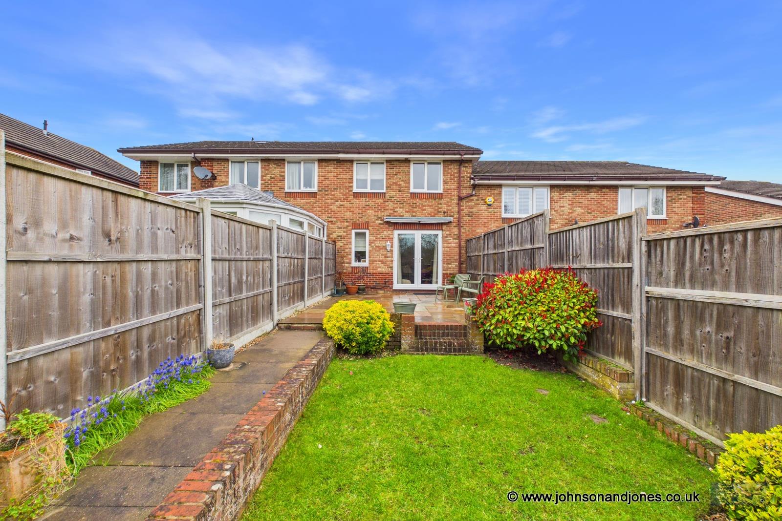 Located in a quiet family cul-de-sac within the ever-popular Chertsey Knole development, Crown Rise is a delightful terraced home that perfectly blends modern luxury with practical family living. Positioned just a short stroll from both Salesian and Sir William Perkins Schools, the property offers immediate appeal with a private front driveway providing parking for several vehicles, further complemented by a garage with power, lighting, and an additional secondary driveway.Upon entering, the heart of the home is revealed in the recently refurbished kitchen, a space that will delight any culinary enthusiast with its luxurious stone worktops and high-end integrated appliances. This flows naturally toward the rear-aspect lounge and diner, which serves as a serene hub for relaxation and entertaining while offering lovely views over the landscaped grounds. Upstairs, the home continues to impress with three well-proportioned bedrooms. The spacious master suite benefits from its own private en-suite shower room, while the remaining bedrooms—a generous double and a comfortable third—are served by a stylish family bathroom featuring a contemporary white three-piece suite.The outdoor space is perhaps the property's most surprising and impressive feature. The stunning rear garden begins with a large patio area designed for summer gatherings, which gracefully steps down to a manicured lawn. Beyond this lies a second, "hidden" garden, offering an additional lawn and patio that serves as a completely private retreat. With side access gates, rear access to the garage, and the modern comforts of double glazing and gas central heating throughout, this home offers a rare combination of style and convenience in a premier location.Tenure: Freehold